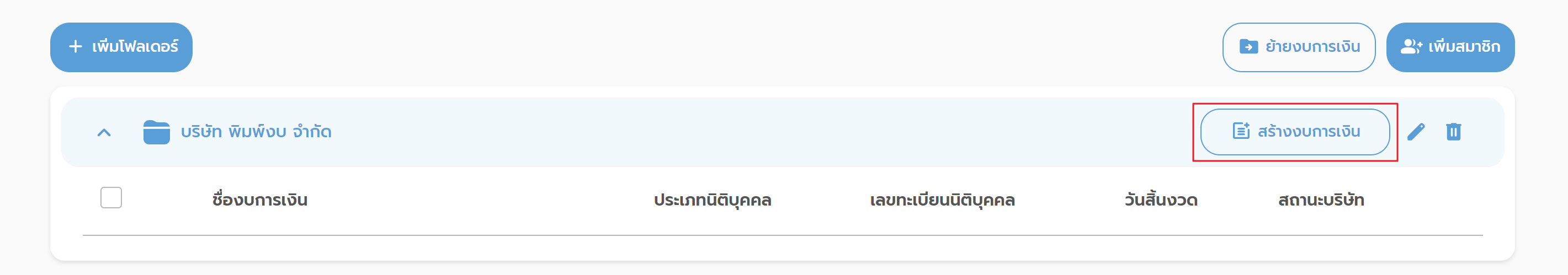 1. ผู้ใช้งานสามารถเพิ่มงบการเงิน โดยคลิกที่ปุ่ม "สร้างงบการเงิน"