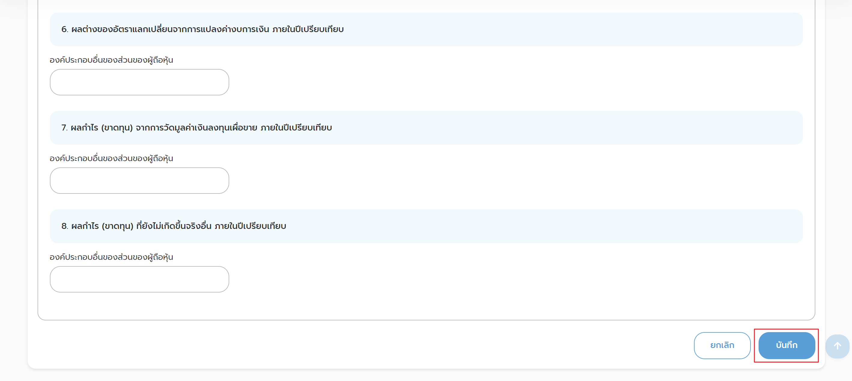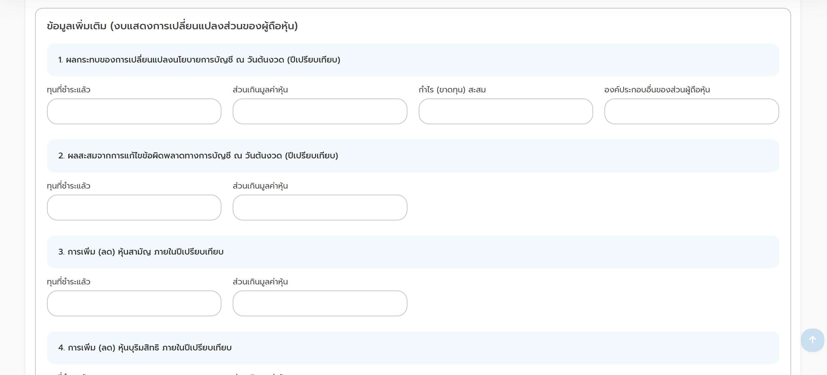 8. กรอกข้อมูลเพิ่มเติม (สำหรับงบแสดงการเปลี่ยนแปลงส่วนของผู้ถือหุ้น) * ส่วนนี้กรอกเฉพาะงบการเงินที่มีปีเปรียบเทียบ โดยนำข้อมูลจากงบแสดงเปลี่ยนแปลงผู้ถือหุ้นปีก่อนมากรอก