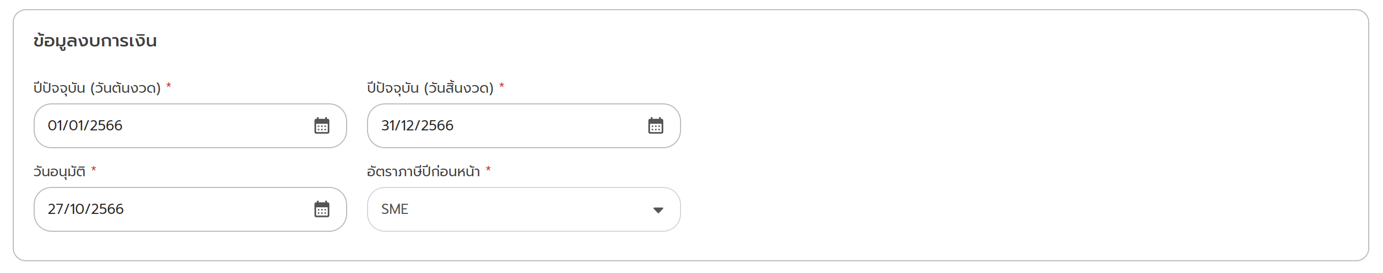 - - ระบุวันที่เริ่มรอบระยะเวลาบัญชีปัจจุบัน และวันที่สิ้นรอบระยะเวลาบัญชีปัจจุบัน