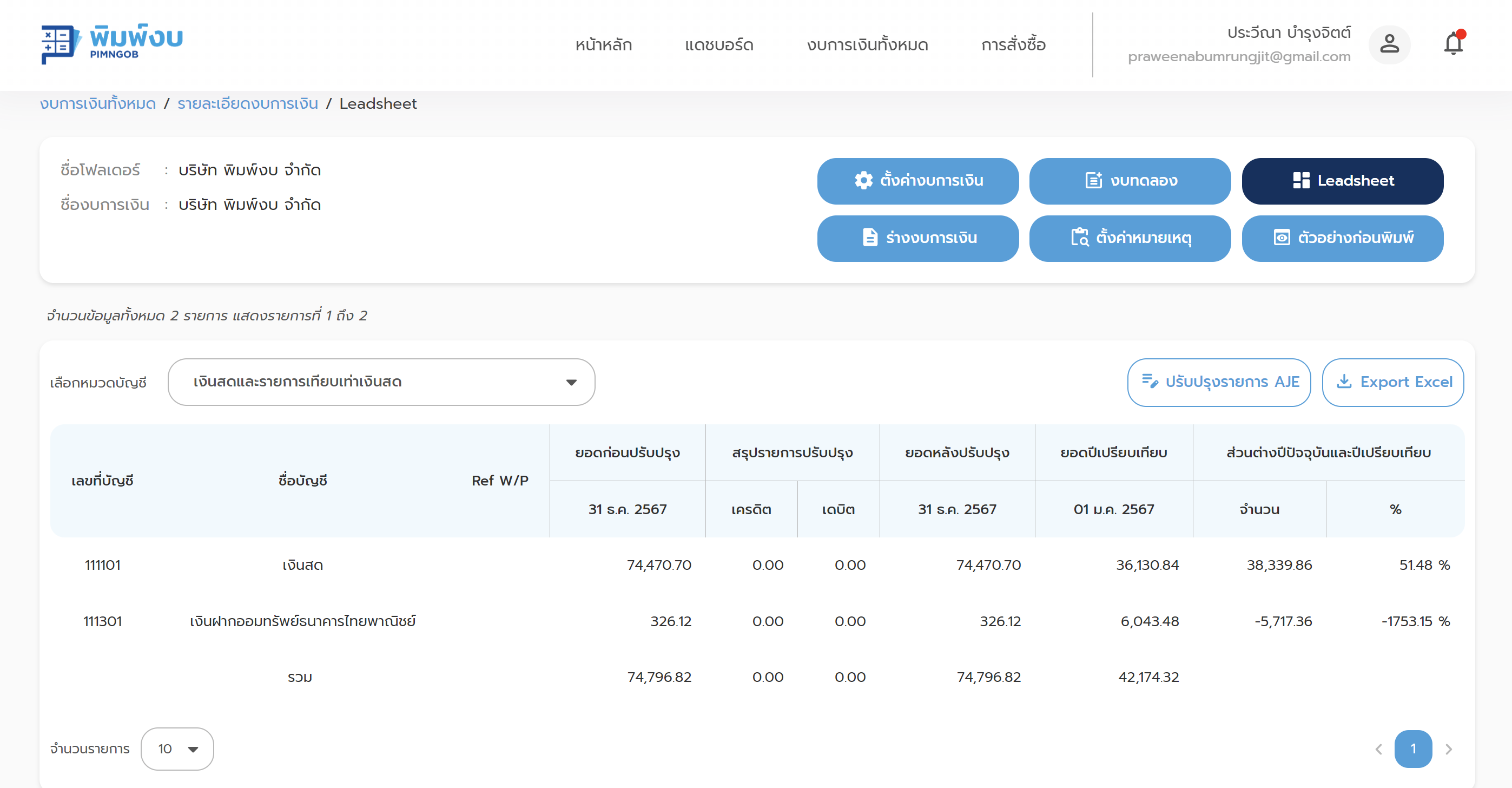 Leadsheet หรือ Working paper คือ การสรุปรายการในงบทดลอง โดยในข้อมูล 1 Leadsheet เท่ากับ 1 หมวดบัญชี หรือ รายการบัญชี ซึ่งในแต่ละ Leadsheet มีการแสดงข้อมูลต่าง ๆ ดังนี้