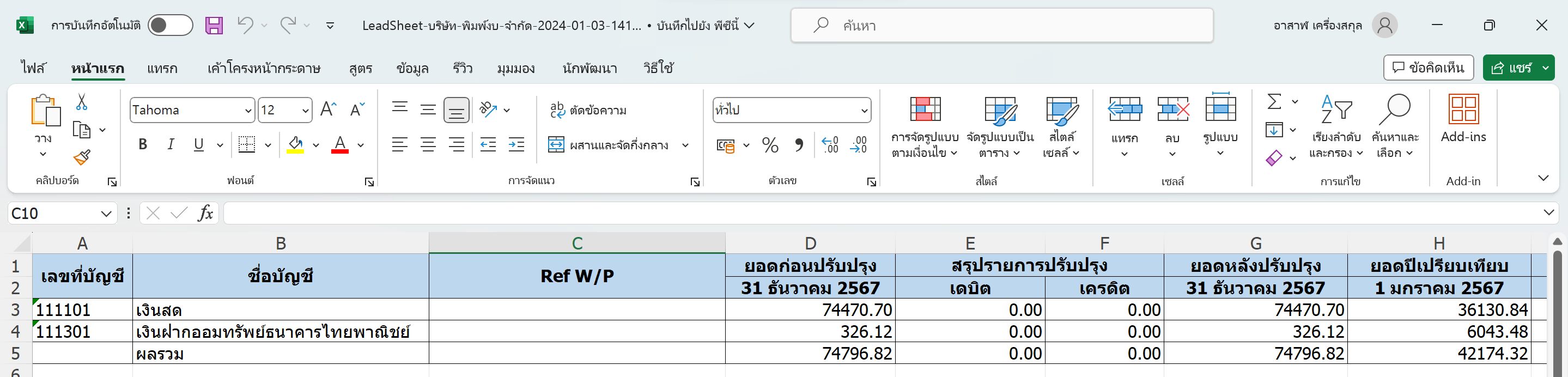- ยอดก่อนปรับปรุง (ยอดปีปัจจุบันจากงบทดลอง)