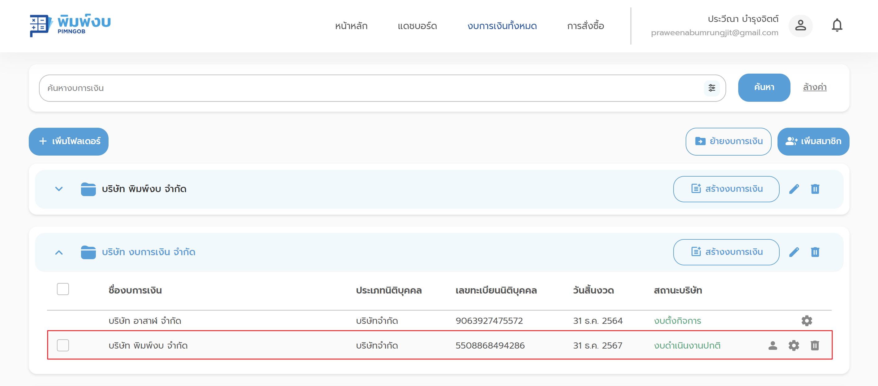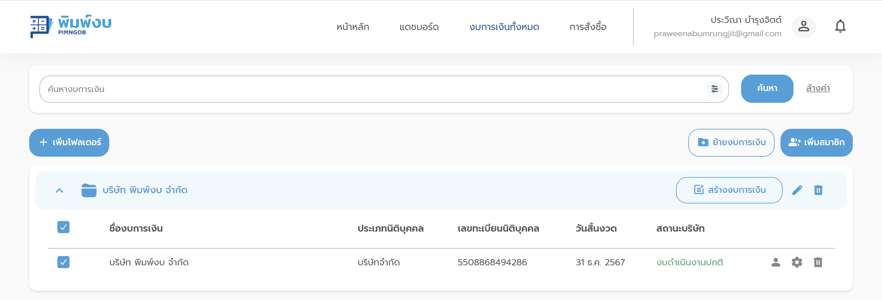4. เลือกงบการเงินที่ต้องการย้าย