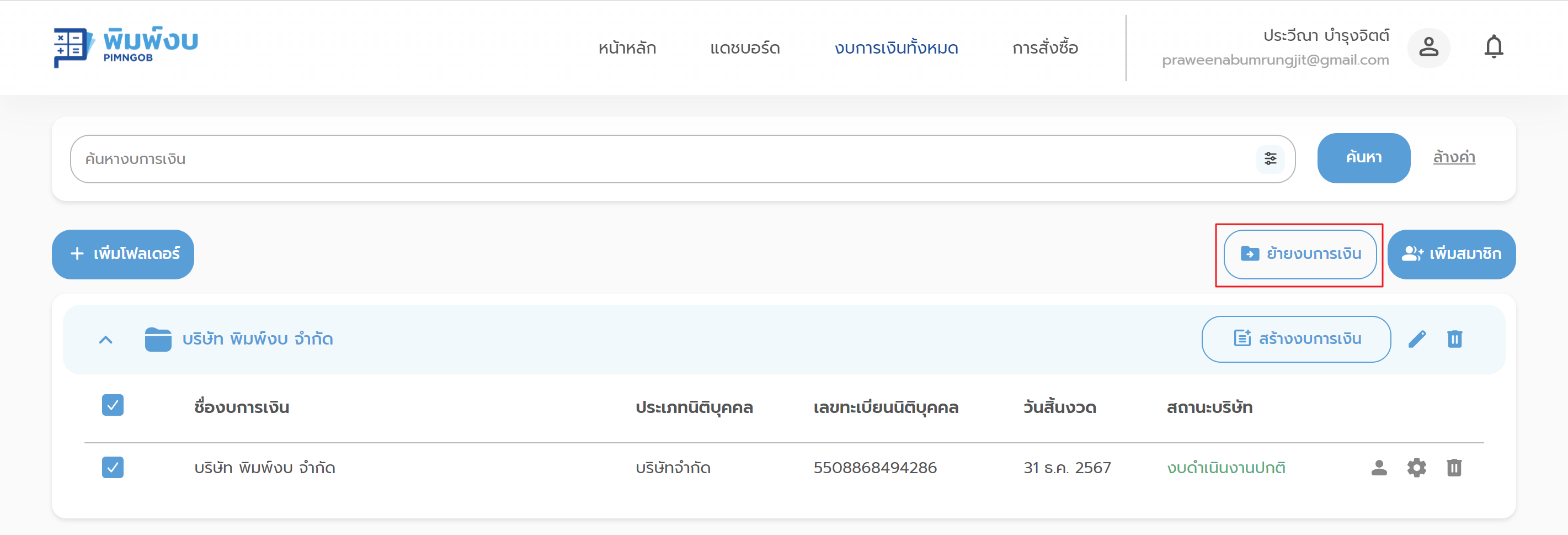 2. จากนั้นคลิกที่ปุ่ม "ย้ายงบการเงิน"