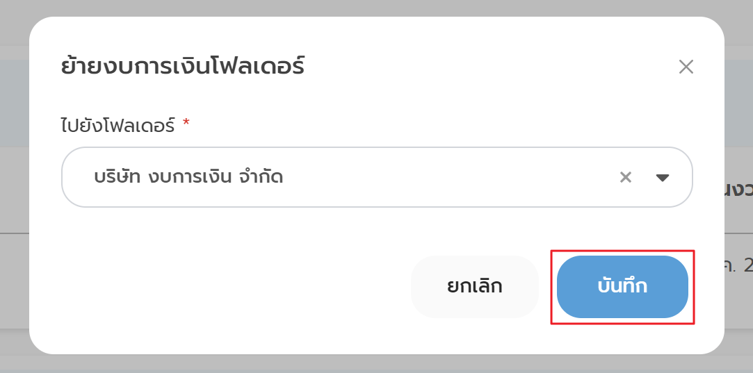 3. ระบบจะแสดงหน้าต่าง "ย้ายงบการเงินโฟลเดอร์"