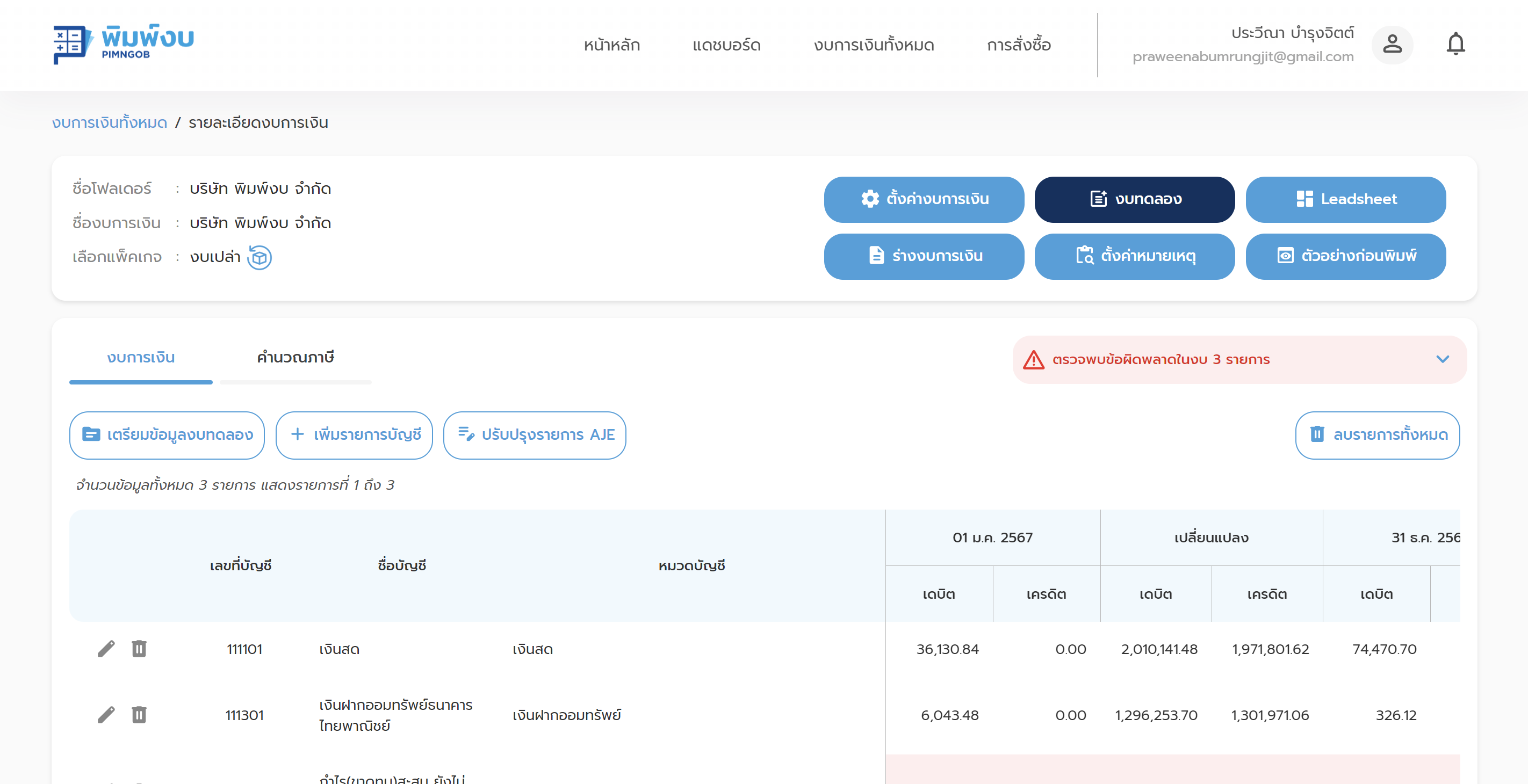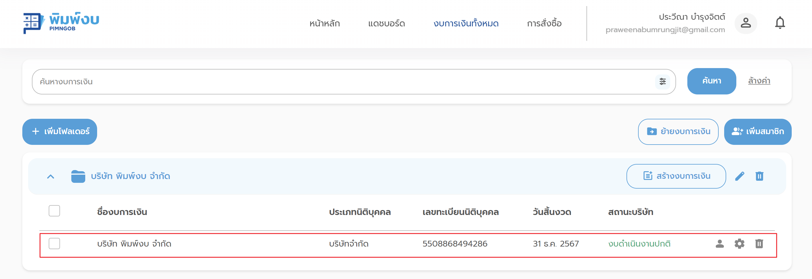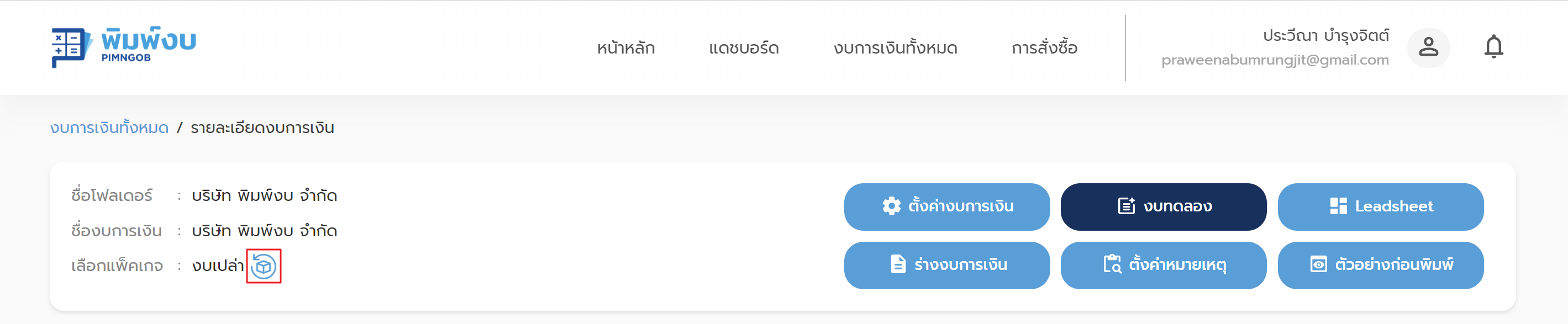 1. กรณีที่ผู้ใช้งานต้องการแก้ไขแพ็กเกจ เลือกงบการเงินที่ต้องการ